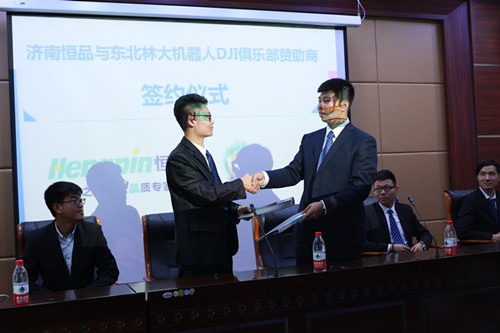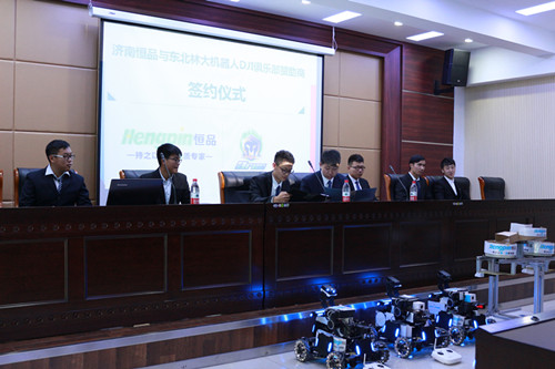 2016年 7月8號上午,濟(jì)南恒品機(jī)電技術(shù)有限公司與東北林大機(jī)器人DJI俱樂部-主贊助商簽約儀式暨2016RoboMasters參賽機(jī)器人發(fā)布會在黑龍江省哈爾濱市東北林業(yè)大學(xué)成棟樓722會議廳舉行.恒品與俱樂部趙天宇、張政、于洋、林峰、馮寧等與會代表共同見證了包裝機(jī)械及試驗(yàn)機(jī)行業(yè)這一值得銘記的歷史時刻,會議由姜子褀主持。