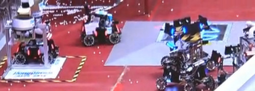 上圖為披掛恒品logo機(jī)器人在比賽中